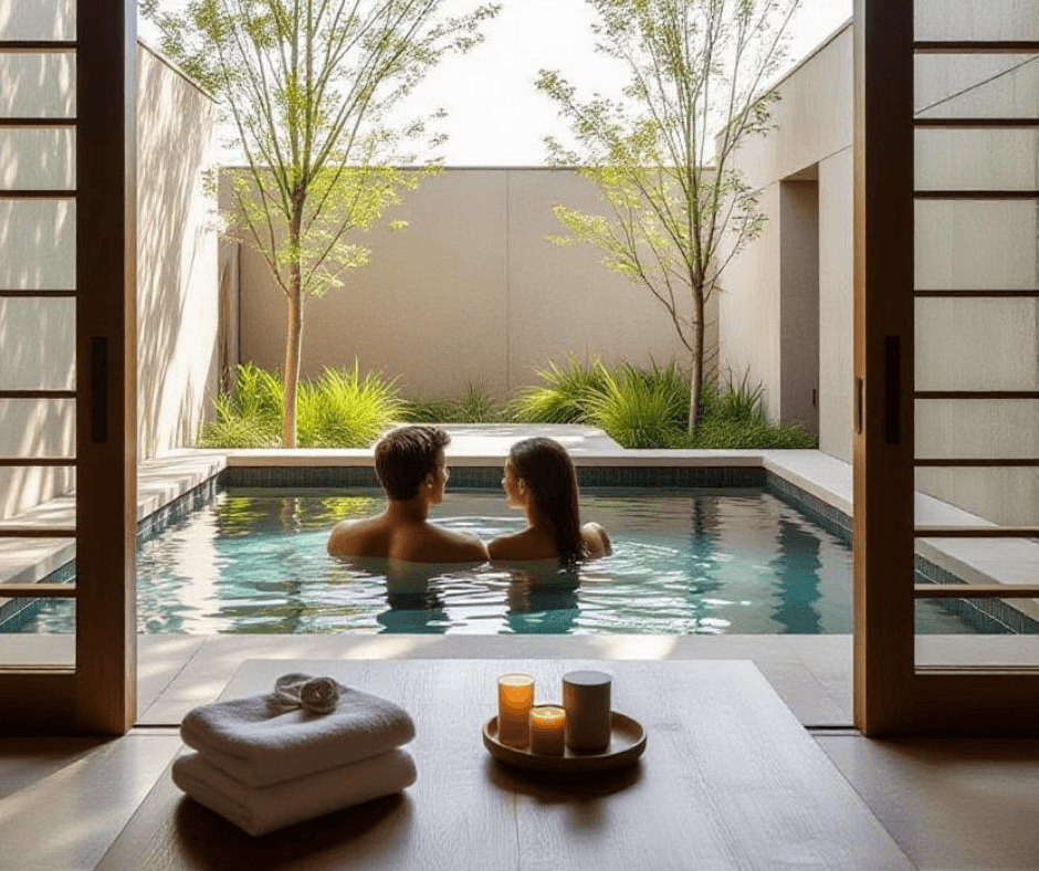 Healing through touch, water and silence: thermal circuits, nordic baths, couple rituals and long afternoons with nowhere to be. Quiet architecture, soft light, and a table that celebrates place.